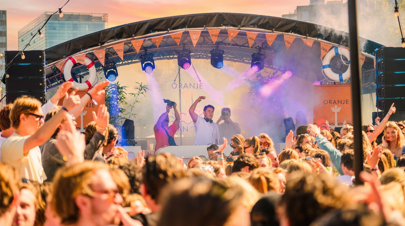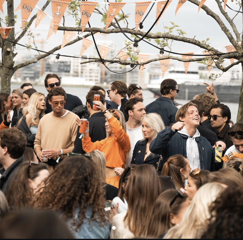 Buiten borrelen, dansen aan het water en samen vieren we Koningsnacht — met uitzicht op de skyline, ijskoude drankjes en die onmiskenbare Frits-vibe.